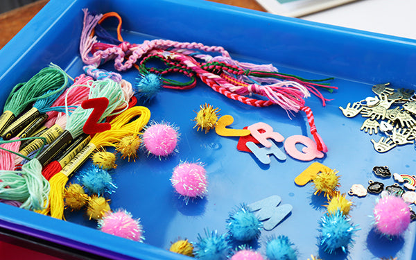As parents, we’re always hoping to encourage creativity (which tends to get messy), while keeping things manageable for ourselves and our sanity. Because, yes, a dried pasta noodle party in the kitchen would result in cute, strung necklaces and a lot of great fine motor practice. But, it would be a huge mess that we don’t have time/want to clean up!